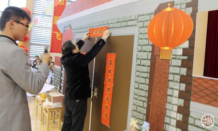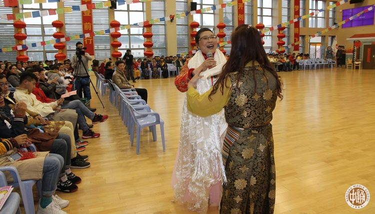 2月15日下午,新健雄馆内经幡飘舞,灯笼高挂,年味十足。2015藏历新年大联欢暨汉藏结对活动表彰大会在此隆重举行。2点左右,身着盛装的藏族同学和结对班级的汉族同学们陆续步入会场,伴随着激动人心的舞龙表演和充满热情的藏族舞蹈,联欢活动正式来开序幕。首先进行的“年味大不同”环节,由徐梦霏和德珍同学分别介绍了汉藏新年习俗,并邀请沈惠祥校长和嘉宾陈翔先生张贴了由丹青书画社同学书写的两副春联,汉族同学还现场学说藏族拜年话,此刻的健雄馆洋溢着浓浓的过年氛围。
