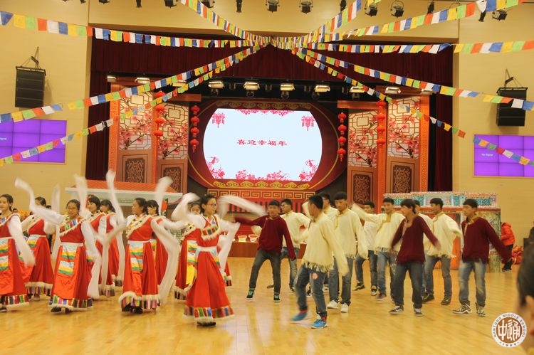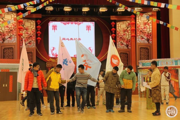 联欢活动中,藏族同学们的即兴演唱以及陆天一同学带来的《花房姑娘》,让我们感受到了新春赛歌会的火热。蒋礼小朋友演奏的萨克斯《月亮代表我的心》,表达了对藏族同胞的深情厚谊。诚恒导师团的“张妈妈”为藏族孩子们献上了动听的《青藏高原》,并鼓励他们学成建设新西藏。“同心共闯关”的团队游戏得到现场汉藏同学的积极参与,大家团队协作,配合默契,精彩表现赢得现场同学们的阵阵欢呼。活动的最后,汉藏同学在欢快的乐曲声中,手拉手跳起欢快的锅庄舞,共同迎接又一个“幸福年”的到来!