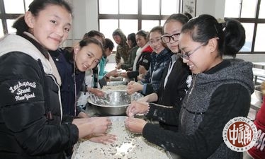 按照藏族习俗,西藏人在藏历新年的前一天晚上要吃“古突”,寓意辟邪迎新。西藏生在食堂师傅的帮助下还事先兴致勃勃的自己动手制作“古突”,并把对未来美好的祝愿裹在“古突”里,幸福与快乐洋溢在每一位同学脸上。