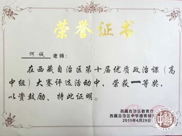 4月24日至29日,西藏自治区第十届优质政治课大赛在河南省郑州市第四中学举行,我校何诚老师参赛并荣获一等奖。
