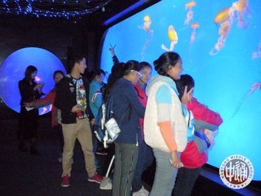 上午,学生们参观了位于东方明珠塔下的上海水族馆。很多学生是第一次近距离的接触到曾经只在书本中看见的海洋生物。他们驻足于每一个展柜前,仔细阅读着旁边的说明文字,充满好奇的观赏着水中的海洋生物,兴奋之情溢于言表。