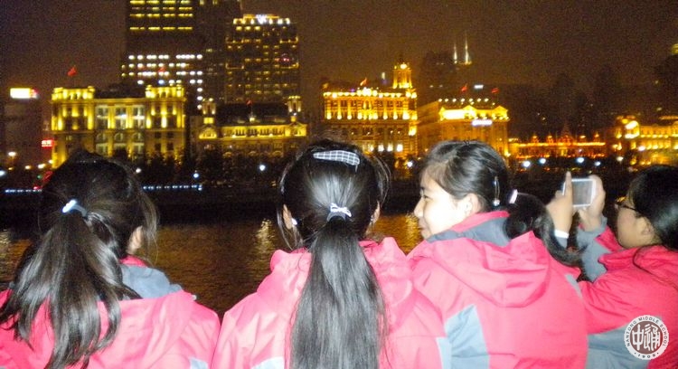 夜间,学生们乘坐邮轮畅游了上海黄浦江。浦江两岸荟萃了上海城市景观的精华,夜幕下的浦江尽显上海都市的柔情。外滩上错落有致的万国建筑,浦东挺拔壮丽的现代高楼,色彩斑斓的霓虹灯光,让同学们惊叹和陶醉。