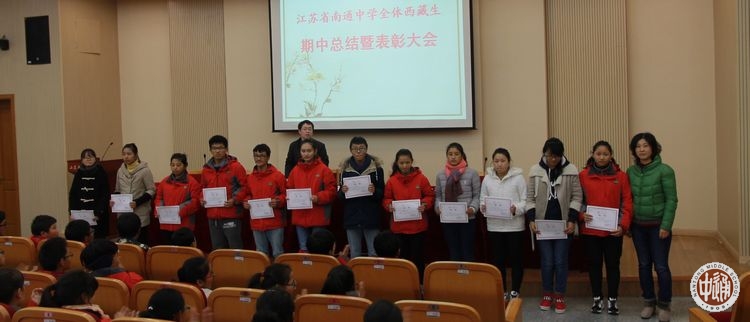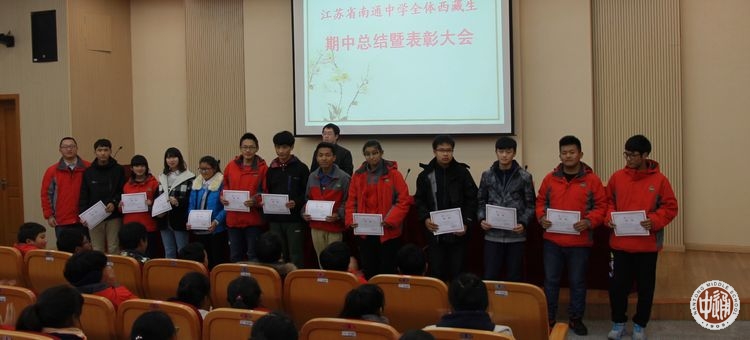 会议首先根据《江苏省南通中学西藏班学生大型考试奖励的规定》,表彰了在本次期中考试中成绩优秀和显著进步的同学,由班主任老师向获奖学生颁发证书;同时,对达成相关考核要求的散插在普高班的西藏生颁发“学习成绩突出奖”证书。通过表彰先进激励获奖学生再创佳绩,并在全体西藏生中树立榜样,引领积极向上的学习风气。