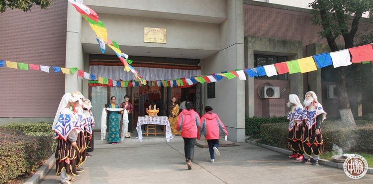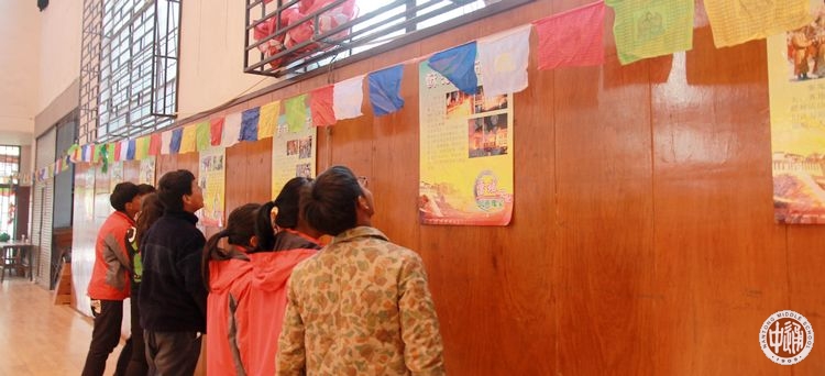 在学校民族教育处的指导和高二西藏班同学的策划下,一年一度的学校“藏文化宣传周”又如约而至。12月21日中午,老健雄馆内被装饰得极富藏族文化特色:五彩经幡在场馆上方飘扬,墙壁四周挂起了西藏风光的大幅图画和介绍西藏各大节日的宣传展板,场地被划分为数个各具特色的文化展示和互动交流区域,正门口一张哈达装饰的桌上摆放着切玛,切玛是藏族一种象征吉祥如意的物品。在藏族特有的迎接宾客的桑烟中,两位身着民族服饰的西藏学生手捧哈达,热情的欢迎老师和同学们的到来。