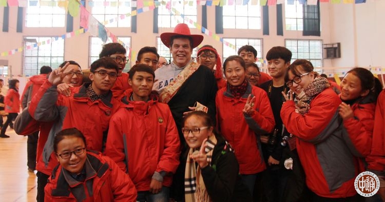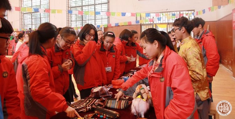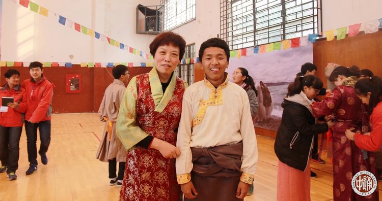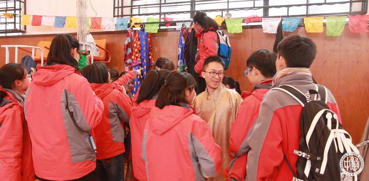 “藏装试穿区”是最吸引汉族老师和学生的地方。藏族学生从自己宿舍里取来崭新的、色彩款式各异的藏装,热情的为汉族老师和同学试穿。第一次穿上藏装的汉族同学们兴奋之情溢于言表,相机的闪光灯中记录了一位位身着藏装的汉族师生们灿烂的笑脸。国际部的外籍老师也被独具民族魅力的藏服深深吸引,试穿藏服的过程中赞叹着中华文化的多元和丰厚。