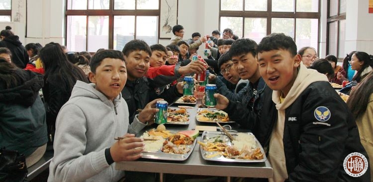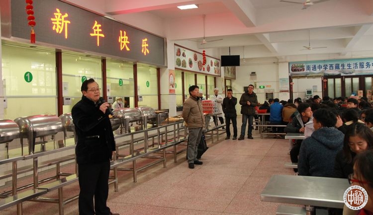 下午4时许,大家齐聚在学校食堂,共进团圆年夜饭。学校副校长沈惠祥、民族教育处主任於锡龄、后勤处主任助理魏俊,以及西藏班的班主任老师和生活老师赶到学校与同学们共迎新春。