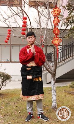 拜年的活动中,西藏生们热情的参与到“最佳藏饰打扮”的评选中。西藏幅员辽阔,下辖1个地级市(拉萨市)、6个地区(昌都地区、林芝地区、山南地区、日喀则地区、那曲地区、阿里地区)。每个地区在服饰、帽饰、挂饰、鞋饰等方面都有自己的特色。同学们身着具有家乡区域文化特色的藏服,配上精致的藏族饰品,摆出独具藏族气质的姿势,用自己的方式传承优秀文化,彰显民族自豪感,欢庆藏历新年!