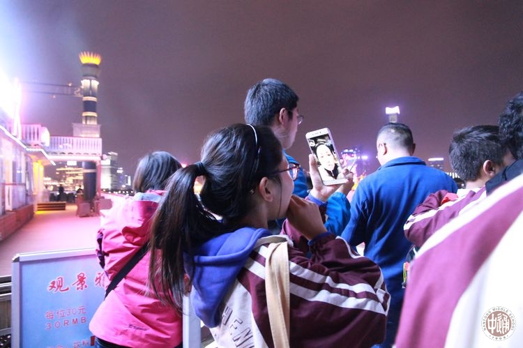 夜间,学生们乘坐邮轮畅游了上海黄浦江。浦江两岸荟萃了上海城市景观的精华,夜幕下的浦江尽显上海都市的柔情。外滩上错落有致的万国建筑,浦东挺拔壮丽的现代高楼,色彩斑斓的霓虹灯光,让同学们惊叹和陶醉。