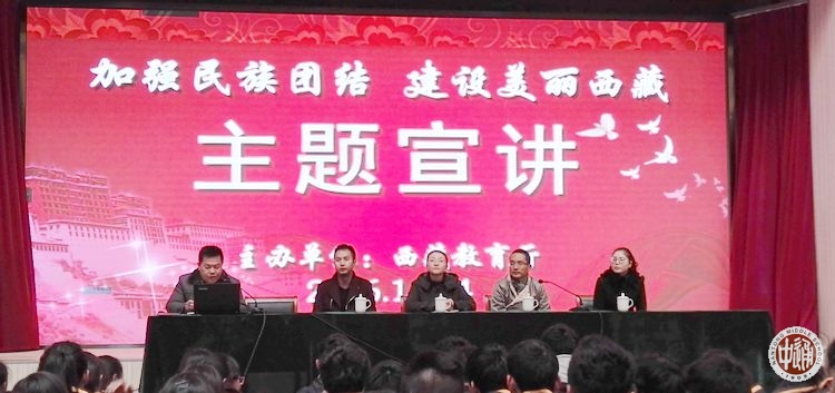 为进一步贯彻落实党中央关于办好内地西藏班的一系列指示精神,进一步加强全国内地西藏班学生思想政治工作,近日教育部民族教育司、西藏自治区教育厅组织开展以“加强民族团结,建设美丽西藏”为主题的巡回宣讲活动。宣讲团由西藏教育厅思想政治工作处处长巴桑卓玛、内地西藏班管理中心老师刘国、西藏大学思政教学部博士刘玉、内地西藏班优秀毕业生代表次仁扎西组成。南通地区宣讲活动在南通西藏民族中学进行。11月24日上午,我校民族教育管理处主任助理邬云琰和我校12名西藏班学生代表参加活动。