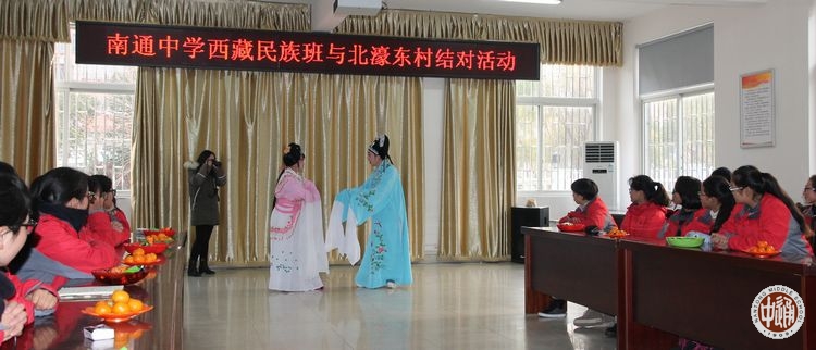 12月29日下午,市和平桥街道北濠东村社区的小剧场里歌声、笑声、掌声此起彼伏,社区二十余位居民与我校高二17班西藏生载歌载舞,共迎元旦新年。活动伊始,北濠东村社区党委书记瞿家峰、社区主任江莉萍分别向我校西藏班同学致以新年的问候,市少数民族联谊会副会长、我校老三届校友张薇丽女士特意赶来问候,并现场演绎了一首《青藏高原》。