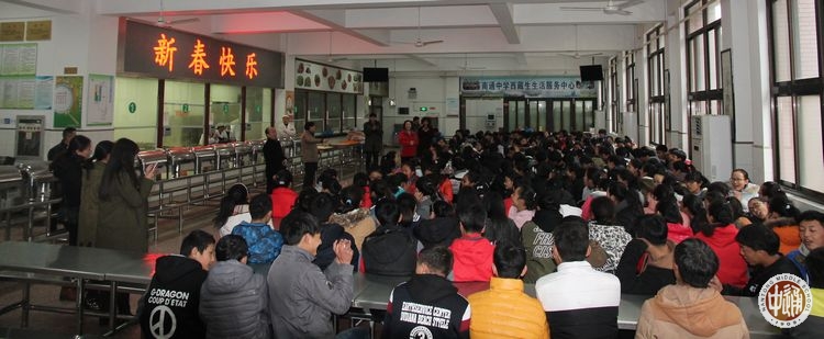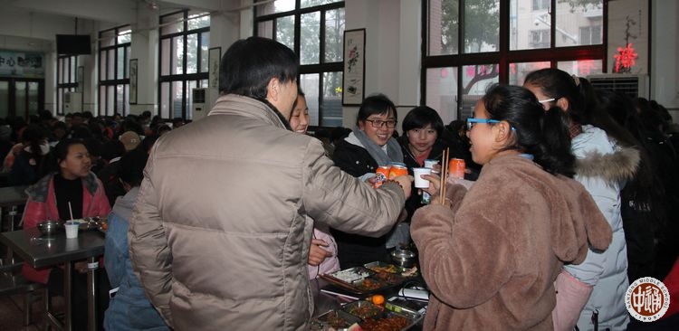 下午4时许,大家齐聚在学校一楼食堂,共享团圆年夜饭。学校党委书记陈文辉、民族处主任於锡龄、后勤处主任助理魏俊,以及西藏班的班主任老师陈春建、宗海银、邬云琰、葛海燕、顾云飞、单志玲和生活老师王娟等赶到学校与同学们共迎新春。