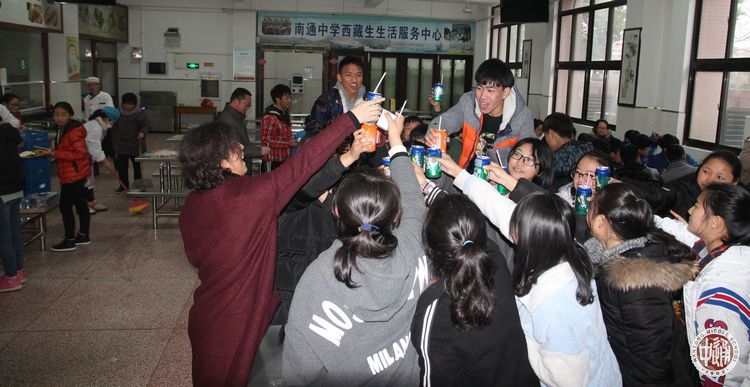 “新年快乐!”“扎西德勒!”“幸福安康!”一声声新年祝福不绝于耳。於锡龄主任和西藏班的班主任们走到每一桌同学中间,以饮料代酒,举杯祝福:祝福高一高二西藏班的同学们在新的一年里不断充实自己,做沟通汉藏文化的使者,做优秀的通中人;高三的同学们要坚守三年前入学时的梦想,做好充分的准备迎战高考,勇创佳绩!同学们也举杯欢庆,向一年来辛勤付出的老师们致以最真挚的祝福!