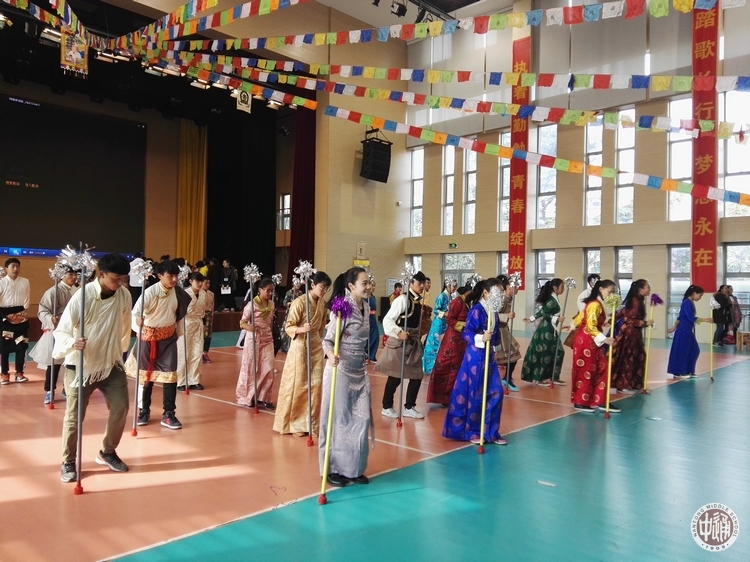 宽敞的健雄馆里,人流涌动,汉藏学生欢聚一堂,体验着藏族文化的无穷魅力,感受祖国文化的多元博大,洋溢着民族和谐一家亲的温馨。