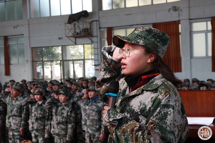 高二18班阿旺卓玛作为学生代表宣誓,服从命令,听从指挥,强健体魄,磨练意志,吃苦奉献,不怕困难。