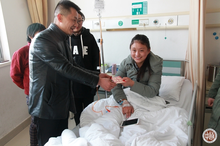 南通中学食堂负责人汪志坚同志,也在第一时间,为孩子免费准备了病号饭,并代表全体食堂工作人员赠送1000元慰问金。南通中学对西藏学生全方位的关爱,也感动了身边其他人,住院期间,负责陪护米玛吉巴同学的护工阿姨,看到远离家乡又十分懂事的米玛吉巴,偷偷地将100元塞在米玛吉巴同学的枕头下。米玛吉巴同学说:作为内地西藏班学生,她是辛运的,更是幸福的,我要将这种爱,带回西藏,带给身边更多的人。谢谢南通中学,谢谢南通人!