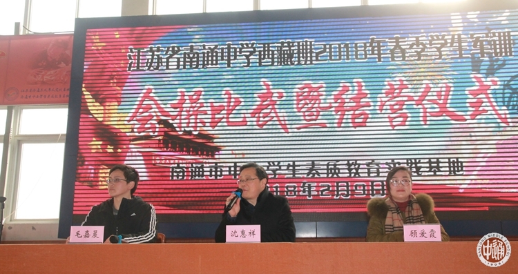 2月9日上午十点,高一高二年级全体西藏班同学举行军训会操比武暨结营仪式。南通中学副校长沈惠祥、训练基地主任顾爱霞等列席观摩。另外,高三西藏班同学们也到达现场,参与评分。