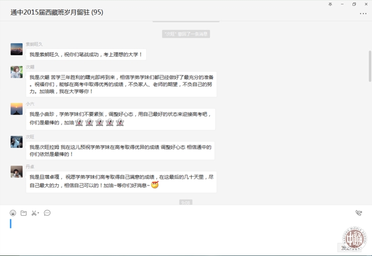 在“为高三鼓劲加油”环节,曾于2016年重返母校与现高三西藏班同学畅谈的2015届西藏班学长们,坚守曾经“等到2018届毕业时送上学长祝福”的约定,传来了加油鼓劲的视频,并通过活动现场的网络连线,用微信送上短语祝福。数人的视频祝福,几十人的短语祝福情谊满满。同时,在场的2017届毕业生代表们也送上自己真挚的寄语。在两届学长的鼓励中,高三西藏班的桑珍和晋美畅谈了自己的感想,并代表高三西藏班89名学生立志高考取得优秀的成绩,回报母校和家乡。民族处主任於锡龄向所有在校生提出寄语:把握现在,面向未来。