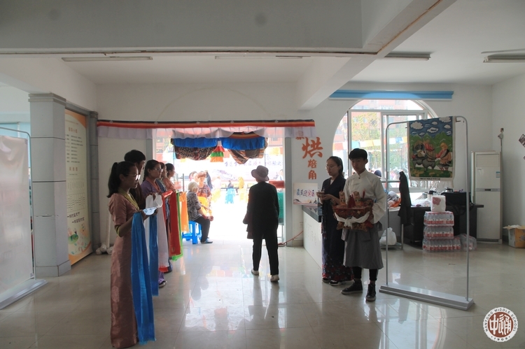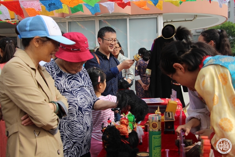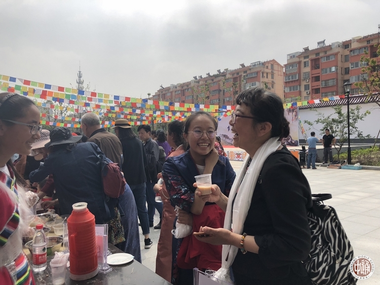 开幕仪式后,六大区域的藏文化展示与体验活动正式开始。在“藏式迎宾区”,身着藏装的同学手捧五色哈达一字排开,满怀祝福的切玛、飘香的酥油茶、浓烈的迎宾桑烟、对开的藏式门帘、精美的藏式壁毯让每一位刚步入活动广场的居民,充分体验到藏族传统风俗中的热情和祝福。
