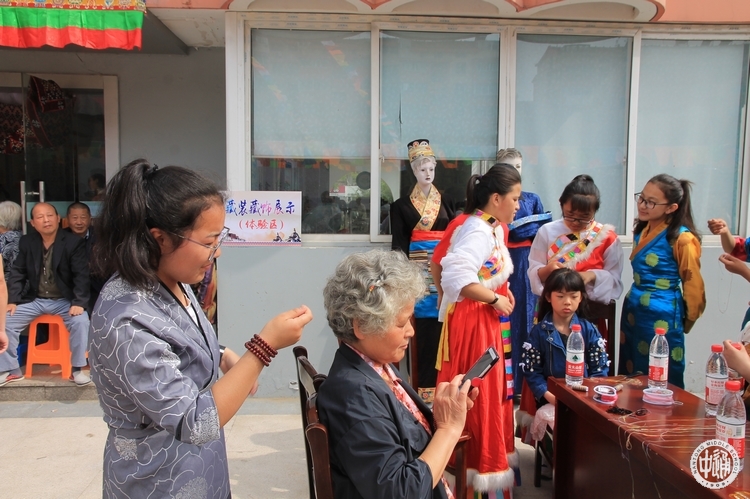 “藏装藏饰展示体验区”则以拉萨和那曲地区的藏装、各式藏族饰品深深吸引着爱美的女性居民们。她们驻足欣赏,并尝试佩戴,举起手机记录下自己最富有民族特色的一刻。体验区设计的“编藏式小辫”那是小姑娘们的最爱。