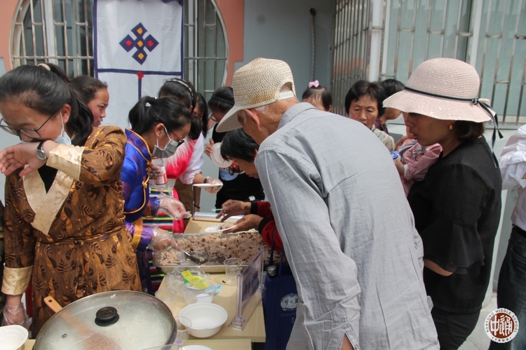 “藏族传统食品体验区”无疑是最吸引人的地方。一排绵延数十米的长桌上用小碗依次摆放着西藏的特色美食。各式干果、藏式奶制品、风干牦牛肉、浓浓的酥油茶早已让品尝者兴奋不已。现场制作的酸奶饭、和糌粑和蒸煮的人生果甜米饭更是让大家过足了藏式美食的幸福感。