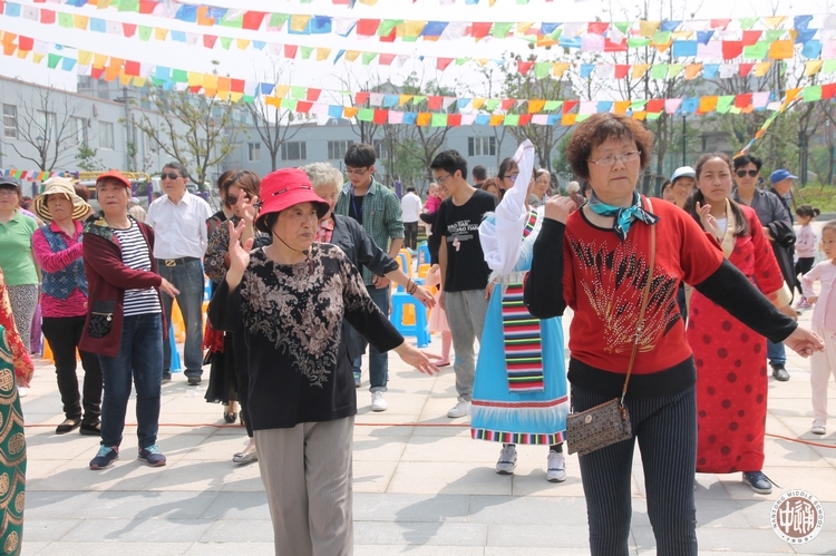 5月13日,上午9时,随着欢快的藏族舞蹈“打阿嘎”,活动的开幕仪式拉开帷幕。出席本次开幕仪式的有崇川区民宗局、和平桥街道、校民族教育管理处的领导和北濠东村社区的居民,以及问讯赶来的其他社区的南通市民。极具藏族风情的歌舞让观者深受感染,掌声连连,叫好不断。观者越聚越多,附近楼房的窗口也满是观看的人。