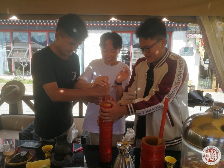 与此同时,藏族学生旦增格旦也说:虽然我们出生在这里,与酥油茶、糌粑接触很多很熟悉,但它的制作过程我们却没有亲身体验过。今天这一番体验让我们对自己的文化有了更深刻的认识,也很高兴能让汉族同学认识藏族传统文化。