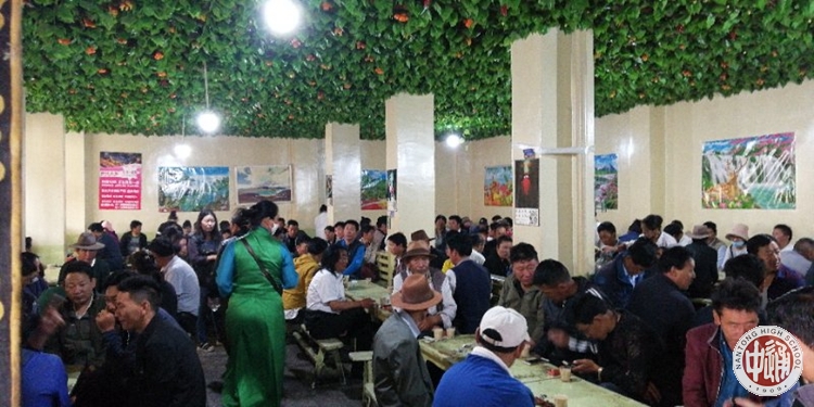 在四名藏族同学的带领下,第二天的行程依旧丰富多彩。早晨9点,还是艳阳高照的天,我们来到当地著名的“光明港琼甜茶馆”吃早餐。忙碌的藏族人在馆内穿梭着,霍森同学为我们一一端上当地的藏面,斟满甜茶,并向我们介绍藏面背后的故事。