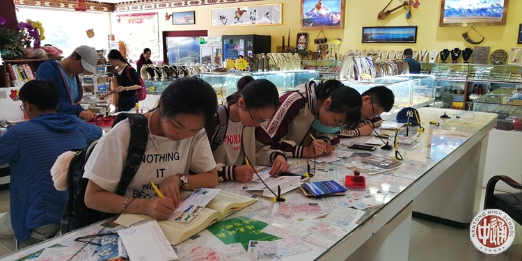 7月8日,研学活动的第四天,更为精彩的一天。晨间藏茶馆里一大碗香喷喷的藏面,紧随着藏民们常态的生活;工艺店里琳琅满目的特色物品与店主热情博学的介绍,接受着最直观的艺术熏陶;邮局里那印着西藏风光的片片信笺上,向远方的朋友写下高原上的祝福;藏生家中那种印刻在心间的感动,留驻下汉藏同学越发浓烈的情谊;晚间藏餐厅中熟悉的味道和传统的艺术演绎,已然融入四位汉族同学的心中。