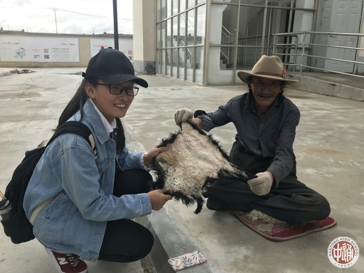 让我印象深刻的是一位揉羊皮(做传统藏服前的工序)的老人,他看见我们很热情地打招呼,特别给我们讲解了许多关于这方面的知识,让我们大开眼界。在这位老人的身上,我们感觉不到没有家人陪伴的孤独感,看到的是在养老院精心照顾下做着自己喜欢的事的老人家的形象。