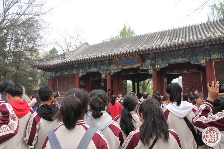 与北大一墙之隔的是水木清华。朱自清的《荷塘月色》、李健的“水木年华”、题写“清华园”的老校门等等也许是很多学生对清华最初的印象,当这些模糊中的印象在眼前清晰、亲手可触时,那会有种莫名的兴奋与幸福。同学们在清华园所见的是百年芳华的清华大礼堂、图书馆、清华学堂等二十余座老建筑,是蜚声遐迩的荷塘;品读的是清华人自强不息、厚德载物的品格;感受的是一代代清华先贤天下责任的家国情怀。当步行到清华老校门时,同学们驻足于旁,一张校门前的合影寄托着同学们对自己理想大学的向往和追求。