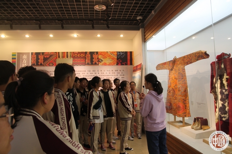 在学府林立的海淀区,有一所独特芳华的全国重点大学——中央民族大学。在这所大学内深藏着一座始建于1951年,以全国56个民族的文物为主要收藏、展示和研究对象的民族学专业博物馆。本次研学活动,我们特意安排了西藏班同学走进中央民大,参观独具特色的民族博物馆。南北方各民族的服饰文化、头饰文化、宗教文化等等的实物和图文展示,让参观的同学直观的感受到中华文化多元一体的生动格局。