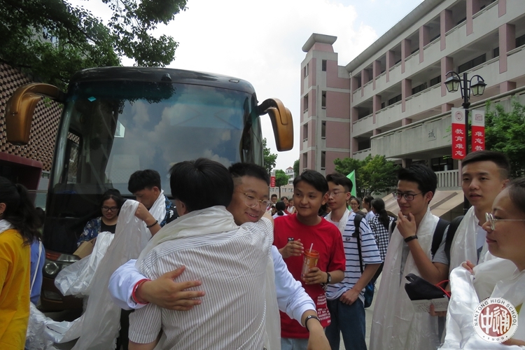 满载着高三西藏学子的车缓缓开动,车上的同学涌到窗边,再多看一眼窗外熟悉的母校、再向自己挚爱的老师和亲爱的学弟学妹们挥手告别。高一高二西藏班的同学们站立在道路的两侧,老师们挂满学生祝福的哈达站立路旁挥手惜别,目送大巴车驶离校园。