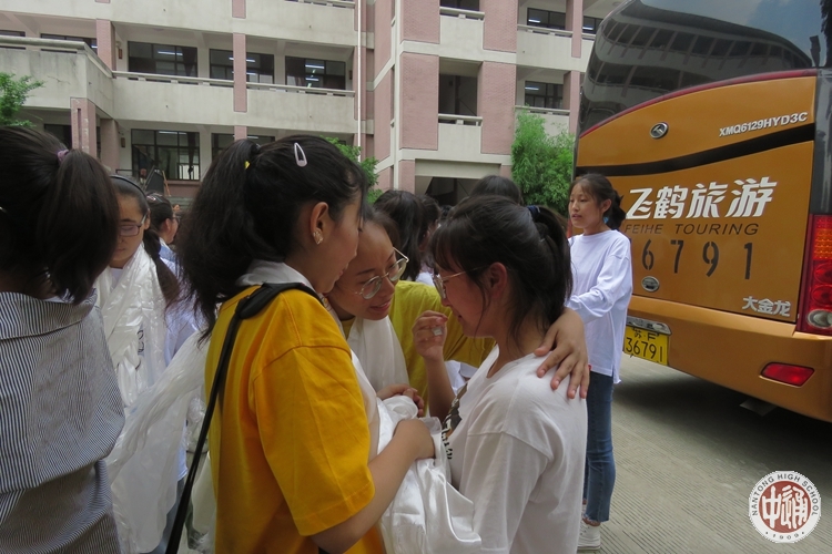 在这离别的时刻,高三的学子们取出珍藏了多日的哈达,献给他们敬爱的老师、挚爱的同学。他们与老师和同学紧紧相拥,泪眼模糊。
