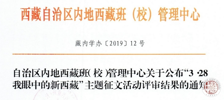 为深入开展内地西藏班(校)纪念西藏民主改革60周年暨“3▪28”百万农奴解放纪念日宣传庆祝活动,西藏自治区内地西藏班(校)管理中心组织开展了“3▪28我眼中的新西藏”主题征文活动。活动设初中组和高中组,高中组设一等奖6名、二等奖9名、三等奖17名、优秀奖33名,优秀组织单位4所。