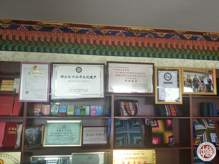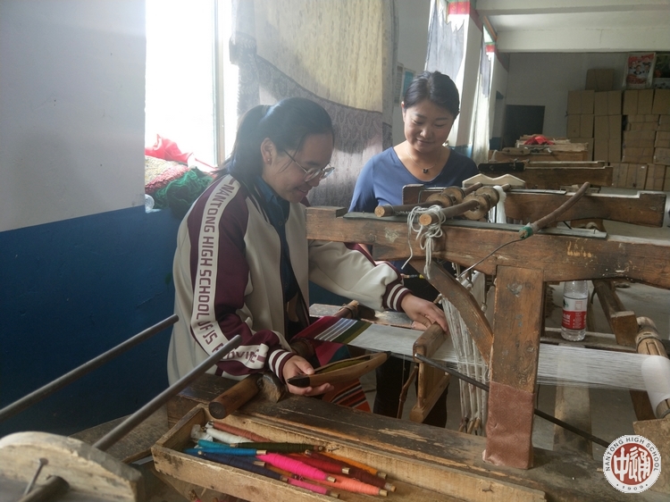 7月29日清晨,我们精神抖擞,身着具有通中校徽的校服,徒步前往第一个实践基地——邦典厂,探访传统手工业的企业。邦典是藏族妇女的藏装上的一种特殊标志,是一种五颜六色、细横线条的氆氇(藏袍原料),后来成为藏族妇女喜爱系在腰间的装饰品,也就渐渐成了藏式围裙的代名词。邦典技艺相传至今有1500多年的历史,相传文成公主的氆氇服装便产自当地。2006年杰德秀镇邦典编织技艺被国务院确定为第一批国家级“非物质文化遗产”。
