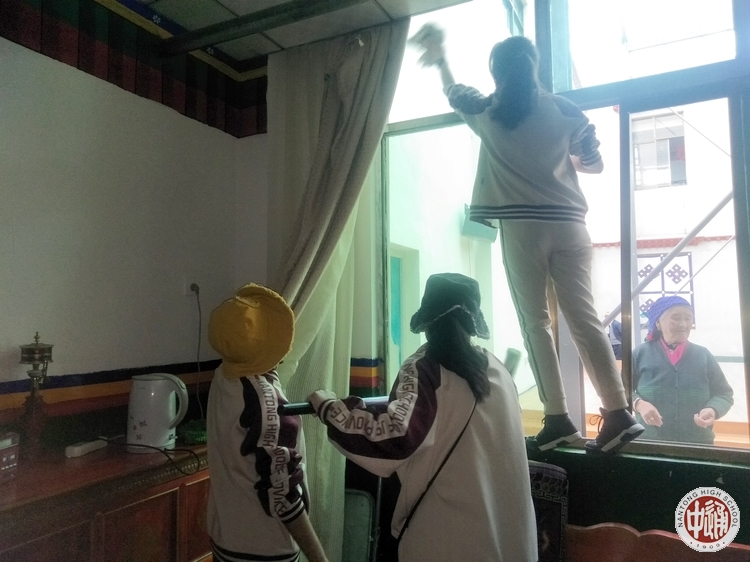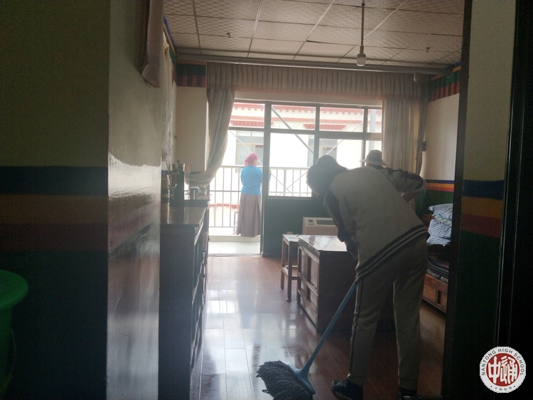 房间里充满了老人和孩子们的欢声笑语,空气中还弥漫着淡淡的藏香。这一刻,看到老人们脸上洋溢的幸福笑容,我们别提有多开心了。大伙儿们还替保洁员阿姨帮一对行动不便的聋哑老人把屋子仔细地清扫了一遍,当我们离开时这两位老人用手语表示感谢,我们也用不太熟练的手语向两位老人表达衷心的祝福。