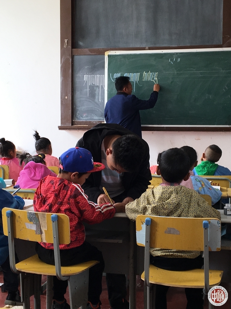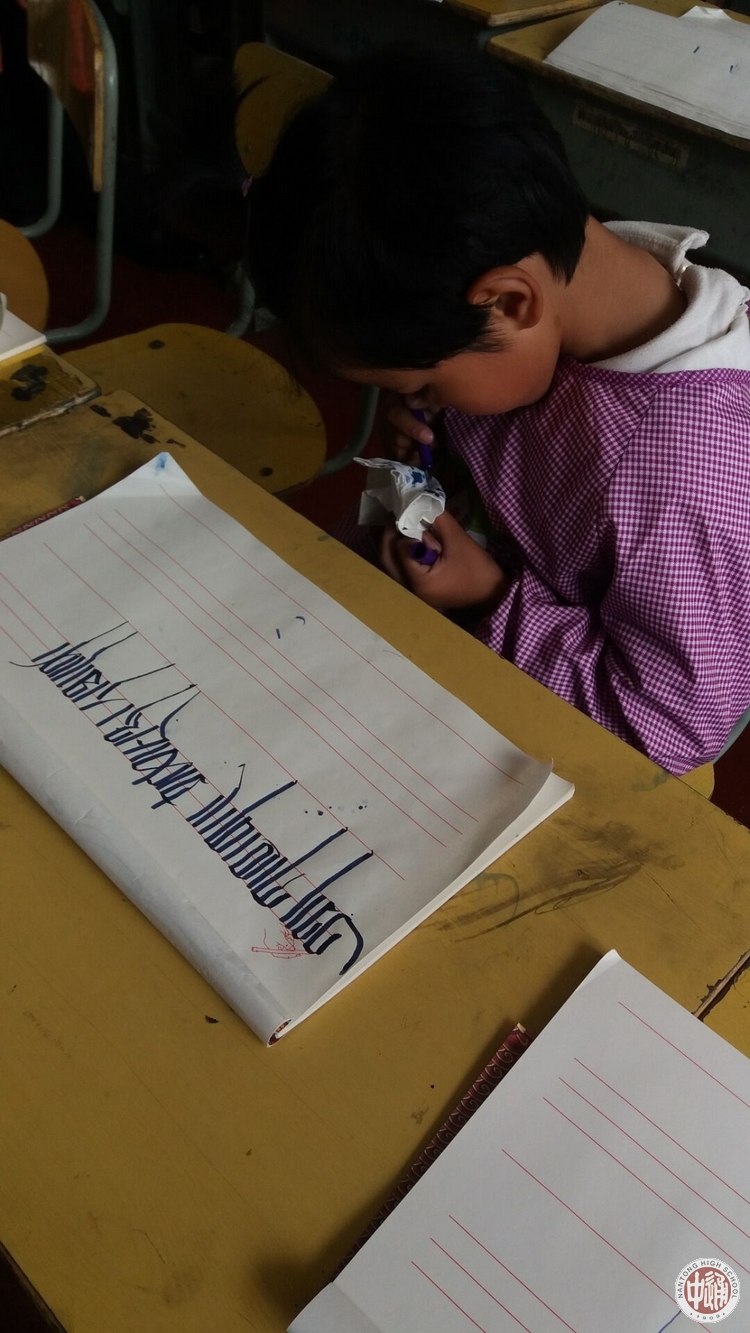 在藏文书法班里大多都是幼儿园或者小学一二年级的学生,尽管年纪小,但都十分认真听讲,传承藏族优秀传统文化是我们年轻人的责任。