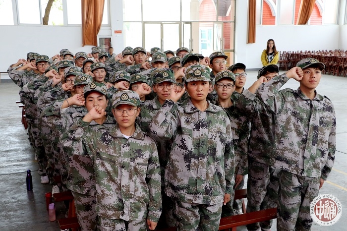 受训学生身着迷彩服,精神抖擞,气宇轩昂,在高二年级格桑罗布同学的带领下庄严宣誓,相信他们必将激励斗志、全力以赴!