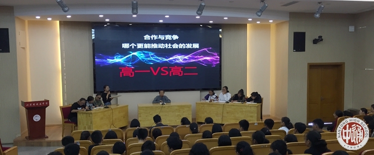 唇枪舌战,辩赛场硝烟;口若悬河,理是非曲直。为提升学生思辨能力和沟通技巧,丰富国庆假期生活,南通中学民族处于10月3日在科学楼报告厅举行了一场题为“合作与竞争哪个更能推动社会发展”的辩论赛。