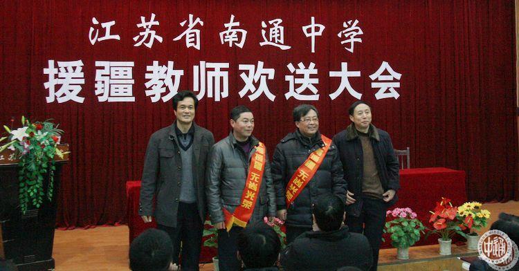 上学期开学前夕的2月14日上午,我校隆重举行援疆教师欢送大会,全体教职员工热烈欢送即将启程前往新疆伊宁二中支教的姚明老师和罗志均老师。下图是欢送大会上校长和党委书记与两位老师的合影。