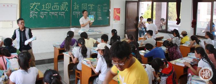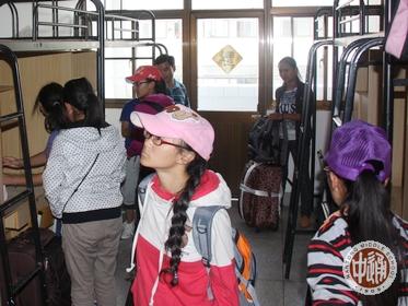 因多年来我校对西藏生的教学质量优异,深得各地兄弟学校和西藏生家长的信任,今年内地西藏班初中毕业生第一志愿填报我校的人数远远超过我校计划招生数。我校实际录取的内地西藏班学生中除1人为第二志愿高分外,其他都是第一志愿录取。因名额限制,各地有52名第一志愿填报我校的学生未能如愿被录取。 新生抵校后首先在宿舍安放好行李(右图),稍事休息后到各自教室集中,初步熟悉班级教学环境并领取课本(下图)。 |