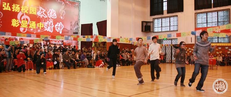 同学们相继表演了诗朗诵《西藏之歌》、小品《新年》、女生歌舞《吉祥谣》、独唱《芦花》、男生舞蹈《穷开心》。节目过程穿插了乒乓球和篮球闯关、呼啦圈、藏式拔河等比赛游戏,输方指定演唱《忐忑》、《好汉歌》等歌曲。以下请欣赏节目和游戏镜头。