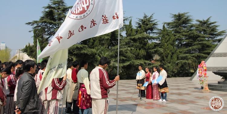学生代表首先向革命烈士敬献花篮,全体师生向烈士默哀致敬。西藏学生们在烈士墓前深情朗诵了《有一首歌》,讴歌革命前辈在缔造和建设新中国过程中的丰功伟绩并庄严宣誓:继承母校的优良传统,树立崇高的理想信念,民族气节在胸,国家利益至上,时刻准备为祖国和人民贡献自己的青春和力量!高一18班次仁德吉同学作为学生代表发言。