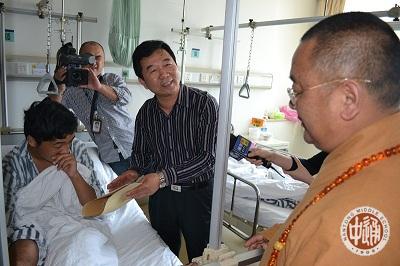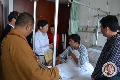 最近南通市民纷纷解囊相助,以各种形式鼓励患有骨肉瘤的嘎玛旦增同学坚定信心,用坚强的意志来战胜病魔。5月21日上午10:00,南通市民宗局原副局长保朴、民族处处长姜建、宗教处处长王旭等领导,带领民族宗教界人士一行9人,将首批3.6万捐款送至嘎玛旦增的病床前,转达了全市民族宗教界对他的关怀,希望他以乐观的态度接受治疗,勇敢面对,争取早日康复,回到自己热爱的南通中学继续读书。