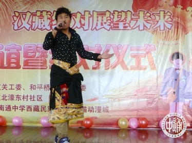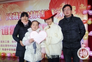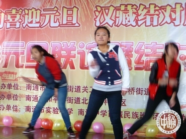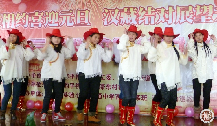2012年12月30日下午,我校26名西藏生在民族教育处主任助理蒋卫星带领下,来到和平桥街道开展“四海相约喜迎元旦,汉藏结对展望未来——2013元旦联谊暨结对仪式”活动。本次活动由和平桥街道关工委、团工委与南通中学、南通实验小学及北濠东村社区联合举办。 |