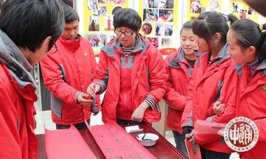 春联,是一种独特的文学形式。它以工整、对偶、简洁、精巧的文字描绘时代背景,抒发美好愿望,是中国的文学形式。每逢春节,无论城市还是农村,家家户户都要精选一副大红春联贴于门上,为春节增加喜庆气氛。北濠社区文联社的成员们热诚的向西藏生们介绍春联的来历,并当场泼墨挥毫,西藏生们也兴致勃勃的拿起毛笔,学写春联。