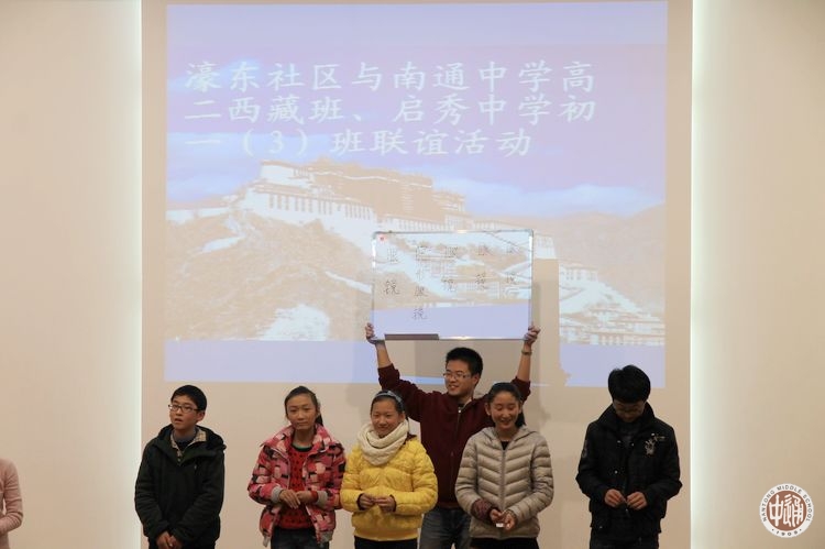 12月7日下午,一场简朴但又十分热闹的汉藏联谊活动在我校科学楼三楼举行。在濠东社区居委会的牵头下,我校高二17班、18班的全体西藏生和启秀中学初一3班的全体学生、南通大学的部分大学生共同参与了本次活动,活动现场气氛活跃,同学们的倾情演出,很好地演绎了汉藏情谊。