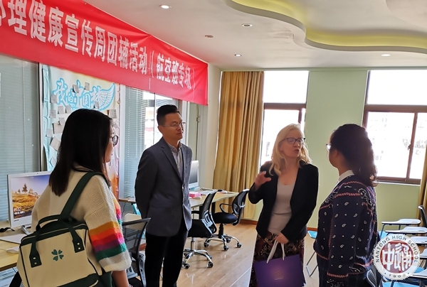 见面会后,我校学生发展指导中心凌强主任陪同浙江大学Thérèse Hesketh教授、吴叶冬博士、浙大研究团队成员我校2013届毕业生李然等参观校园,在学生发展指导中心,专家一行对我校心理健康教育及生涯规划指导较为系统前瞻的工作给与较高评价,并表示今后将在双方合作开展项目研究的基础上,给予过程指导,为后期开展长期监测、比较和干预研究提供基线数据,从而为学校心理教育提供应用参考和决策建议。