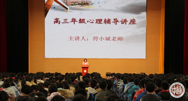 讲座在新健雄馆举行,符老师理论结合实际,通过往届学生生动的事例和同学们作了精彩的分享。讲座内容包括:如何正确看待高考;确定适合本人情况的良好应试策略;如何调整应考心态和行为等,听完讲座高三同学纷纷表示收获很大。