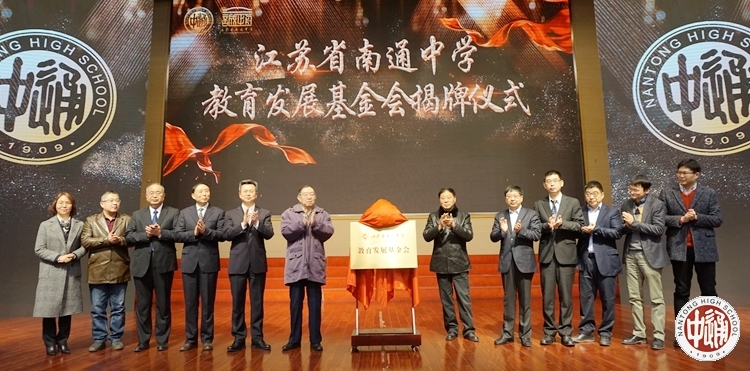 2019年3月9日上午,江苏省南通中学教育发展基金会在通中校庆110周年启动仪式上正式揭牌。热心学校公益事业的企业家、社会贤达,关心母校发展的老校长、校友亲临盛会。南通市民政局局长王国平宣布基金会成立的批文,并与南通市教育局局长郭毅浩为基金会揭牌。为基金会成立捐助注册资金的通中校友李大潜、季余华、徐峰、朱蔚鹏、刘潇和理事会其他成员及监事参加揭牌仪式,同与会的高校、兄弟学校领导及1000多名通中师生和离退休老同志一道,共同见证了基金会的成立。李大潜院士作为基金会名誉理事长、通中校友代表讲话。